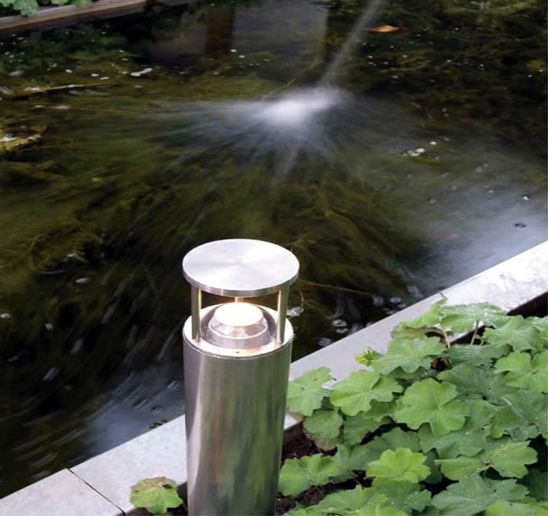 Lumière au dessus du sol, éclairage en rond ou en ovale selon l’orientation de la lentille. La tête de l’armature peut s’enlever pour produire un éclairage vers le haut. Souhaitable pour délimiter les allées, entrées de garage, quais, patios…