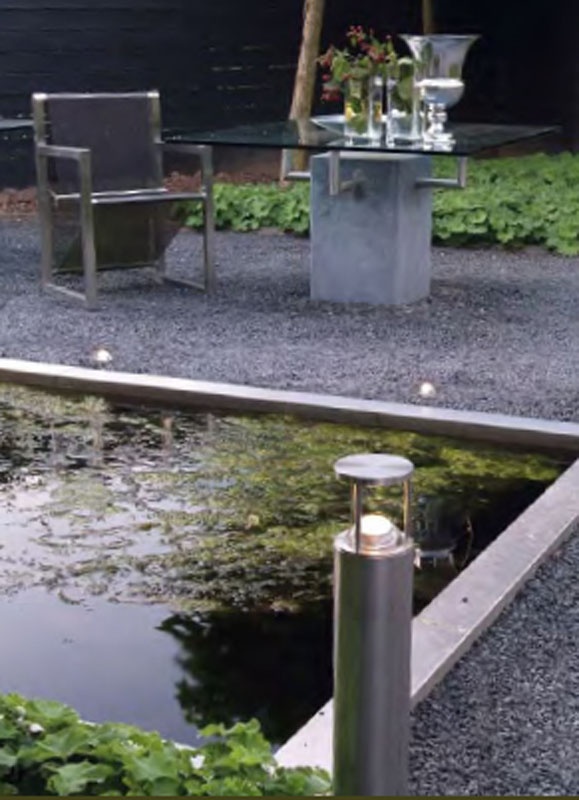 Lumière au dessus du sol, éclairage en rond ou en ovale selon l’orientation de la lentille. La tête de l’armature peut s’enlever pour produire un éclairage vers le haut. Souhaitable pour délimiter les allées, entrées de garage, quais, patios…