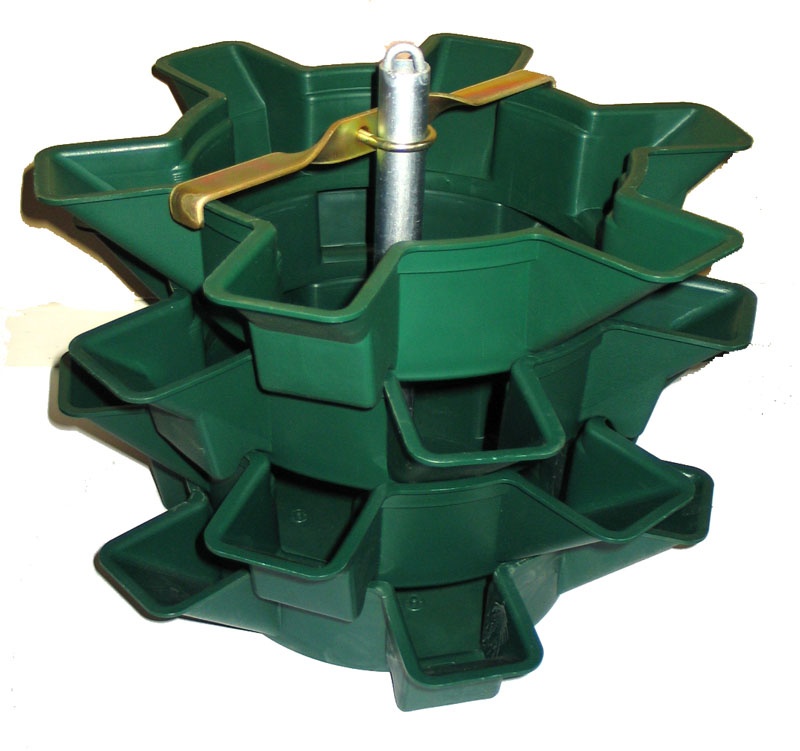 Le coloflore de Jardin Mobile Système est un ingénieux système de couronnes empilables de 3 à 6 niveaux qui permet la réalisation de pots suspendus de 30 à 60 cm de haut.Chaque niveau offre 6 sections de plantation. Le fond et les couronnes sont superposés dans un axe central métallique et stabilisés avec un collier de blocage.