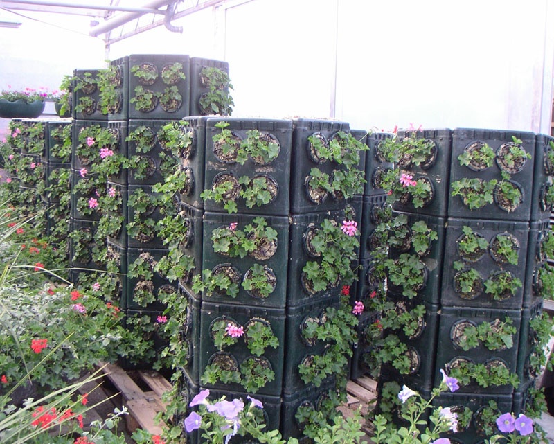 Le Prisme ''36'' de Jardin Mobile Système est un module très léger à 3 faces permettant 3 possibilités de plantation. Une face à 4 paniers de 12 cm pour plantes annuelles, une face à 2 paniers de 15 cm pour plantes arbustives et une face à gorge en U de 20 cm pour chrysanthème cascade. Un volet ferme les faces non utilisées.