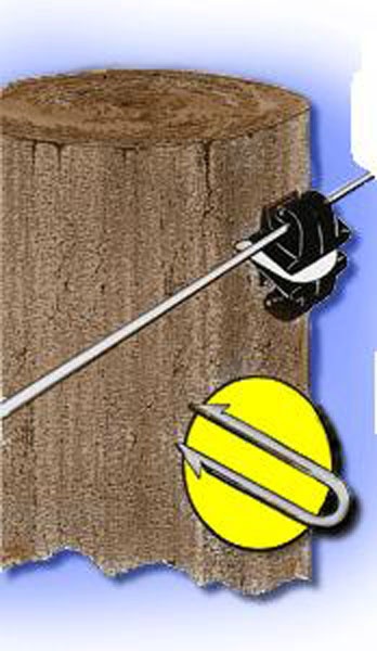 Cette crampe noire, fabriquée en polyéthylène résistant au UV, n'abîme pas les fils comme les crampes de métal. Facile à installer avec un marteau sur les poteaux en bois, elle peut s'utiliser avec tous les types de fils incluant l'Esterwire et le fil Bayco. Le Prudent clip est très économique.