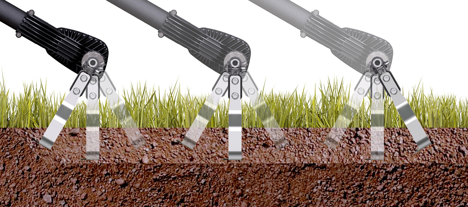 Outil multifonctionnel avec ses 5 lames dentées en option et son mouvement oscillatoire jusqu’à 885 coups/minute lui procurant puissance et performance pour la pénétration dans la terre, le Cultivion s’adapte à tous les types de sol que ce soit en surface ou en profondeur et ce, même tôt au printemps. Son système Quick Switch permet de changer de lame en moins d'une minute. En fonction du terrain sur lequel vous travaillez, talus, pente..., le Cultivion s’ajuste à la taille de l’usager et lui donne la possibilité de régler l'inclinaison parmi les 9 positions possibles de la lame dentée pour une meilleure efficacité. Le Cultivion a été conçu pour effectuer un travail à reculons, évitant ainsi de piétiner la zone travaillée. De par sa légèreté et son faible encombrement, il est très maniable et peut être utilisé en toute facilité entre les massifs floraux et dans les bacs à sable des parcs.
