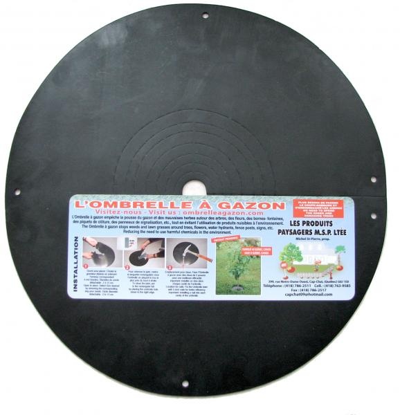 L’Ombrelle ronde à gazon MSP empêche la pousse du gazon et des mauvaises herbes autour des arbres, des arbustes, des bornes-fontaines, des piquets de clôture, des panneaux de signalisation, etc., tout en évitant l’utilisation de produits nuisibles à l’environnement. Une languette de fermeture est fournie afin d’assurer qu’il soit impossible à la végétation de pousser au niveau du joint de l'Ombrelle. Fabriqué de caoutchouc recyclé et d'une résistance extrême, ce produit possède une longue durée de vie. Aussi disponible en géotextile et sous formes rectangulaire ou carrée. Fini l'utilisation du coupe-bordure et le risque d’endommager vos arbres!
