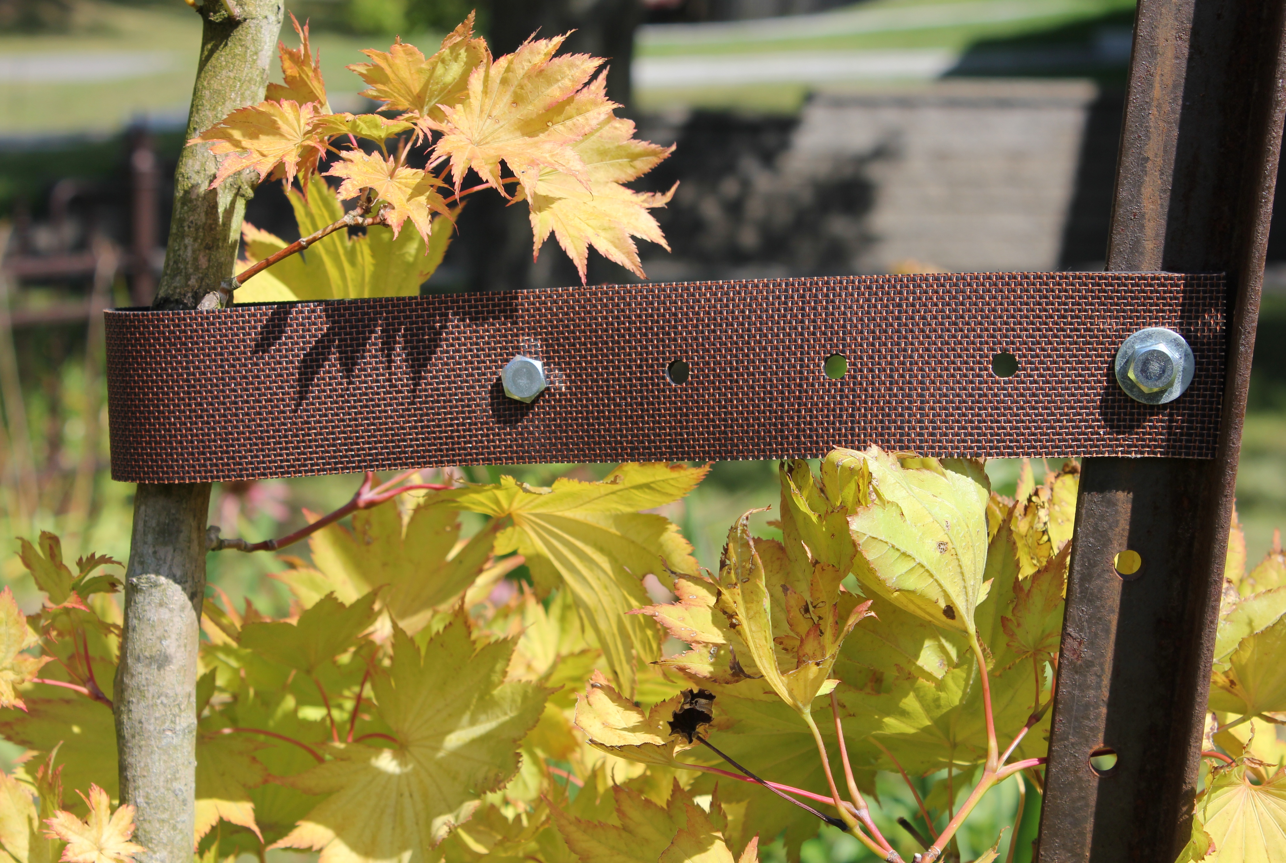 L’attache à tuteur, sellette ou sangle, est fabriquée en caoutchouc renforçi souple d’une épaisseur d'un peu plus de 1/16'' lui conférant une très grande solidité et durabilité. Elle n’endommage pas l’écorce de l’arbre, même par froid intense comme les attaches en plastique ou vinyle rigide. Deux boulons et écrous sont inclus. Elle est disponible en largeur de 1¾'' x 15'' ou 24''.