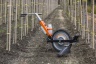 Le pulvérisateur d'herbicide concentré à technologie ULV (volume ultra bas) Mankar-One-S Flex de la ligne ROLL de Mankar possède un cache équipé d'un bras qui peut être monté à droite ou à gauche selon vos besoins. La largeur de sortie maximale du bras est de 50 cm. Le montage est possible devant ou derrière la roue. Trois différentes largeurs de pulvérisation sont disponibles, soit 25 cm, 40 cm, 55 cm. La série Mankar-One et Mankar-Two avec la fonction Flex comprend des caches standards qui, en fonction de la combinaison et de la disposition couvrent des largeurs totales de pulvérisation comprises entre 25 et 110 cm. Les caches se rabattent au contact d'obstacles ex. troncs d'arbres, si bien que la largeur de pulvérisation est adaptée automatiquement. Il est possible de les bloquer si le mécanisme Flex n'est pas souhaité. Ce pulvérisateur s'utilise dans les cultures en ligne ainsi que dans les rangées étroites et en bordure des chemins. Muni d'une roue étroite de 53 cm, le Mankar-One-S Flex utilise une pompe intégrée dans la roue et activée par sa rotation pour garantir un dosage précis de l'herbicide indépendant de la vitesse de marche. Le cache à profil bas est idéale pour passer sous les branches basses des épinettes, des pins, des sapins ou encore des buis, de sorte que vous pouvez pulvériser sous celles-ci sans pulvériser directement les branches.
