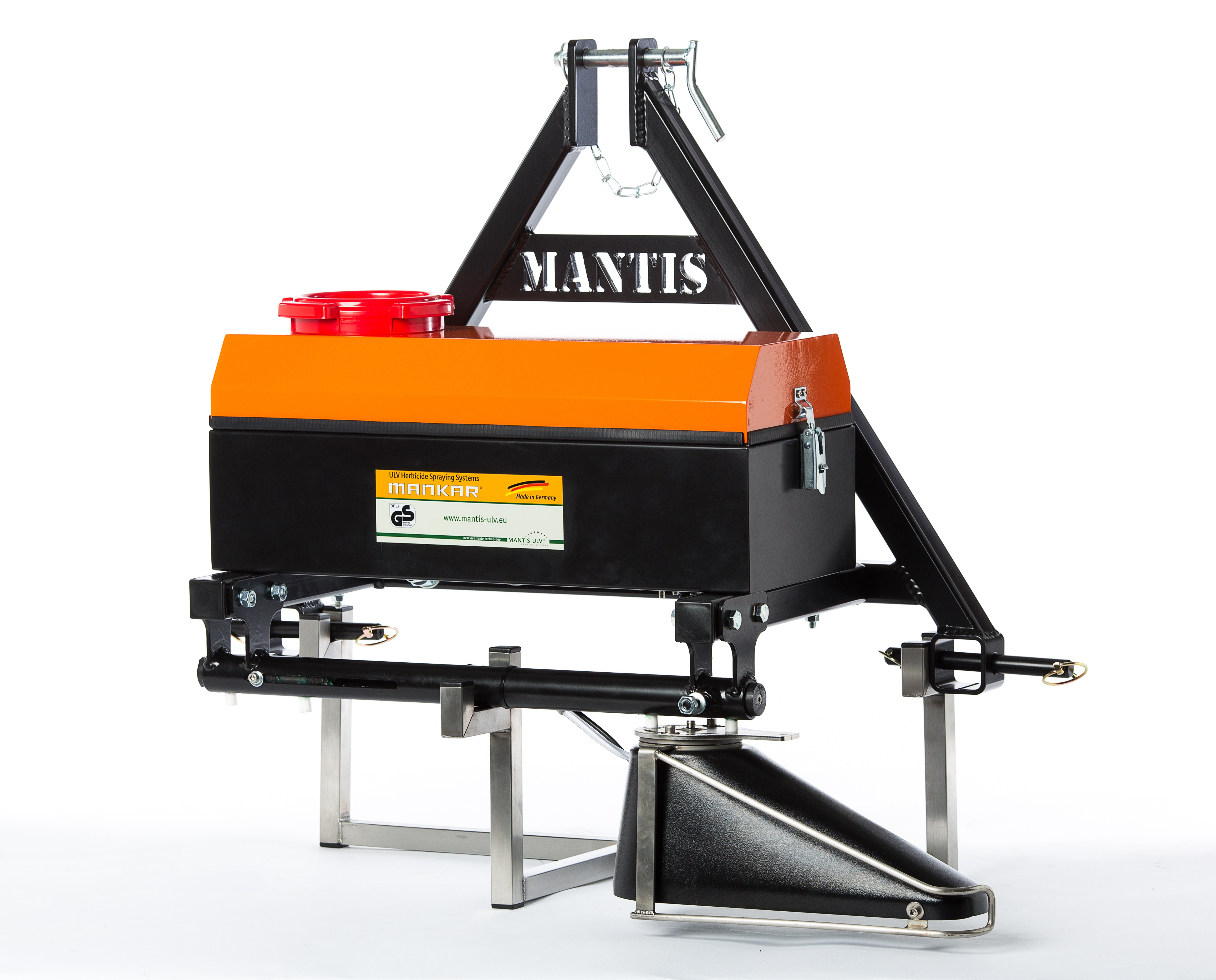Le pulvérisateur d'herbicide concentré à technologie ULV (volume ultra bas) Varimant-One-S Flex de la ligne DRIVE de Mankar possède un cache de 55 cm (22'') qui peut être monté à droite ou à gauche selon vos besoins sur la barre d'extension de montage. La largeur de travail est réglable jusqu'à un maximum de 1.1 m . L'installation de l'appareil peut se faire à l'avant ou à l'arrière du tracteur. Les pulvérisateurs de la série Varimant S sont tous équipés de caches qui se rabattent au contact d'obstacles ex. troncs d'arbres ou vignes, les contournant sans causer de dommages. La tension des ressorts des caches est ajustable permettant leur utilisation même avec de petites tiges. Les caches ont une cage de protection métallique ronde qui les protège en glissant sur les obstacles. Le réservoir à herbicide et les autres composants sont intégrés dans une boîte métallique de protection. Tous les appareils sont équipés d'une surveillance électronique des buses. La pompe entraînée par voie électrique par le réseau de bord du tracteur, tout comme la buse, et le jet de pulvérisation peuvent être mis en marche et arrêté par simple pression d'un bouton.