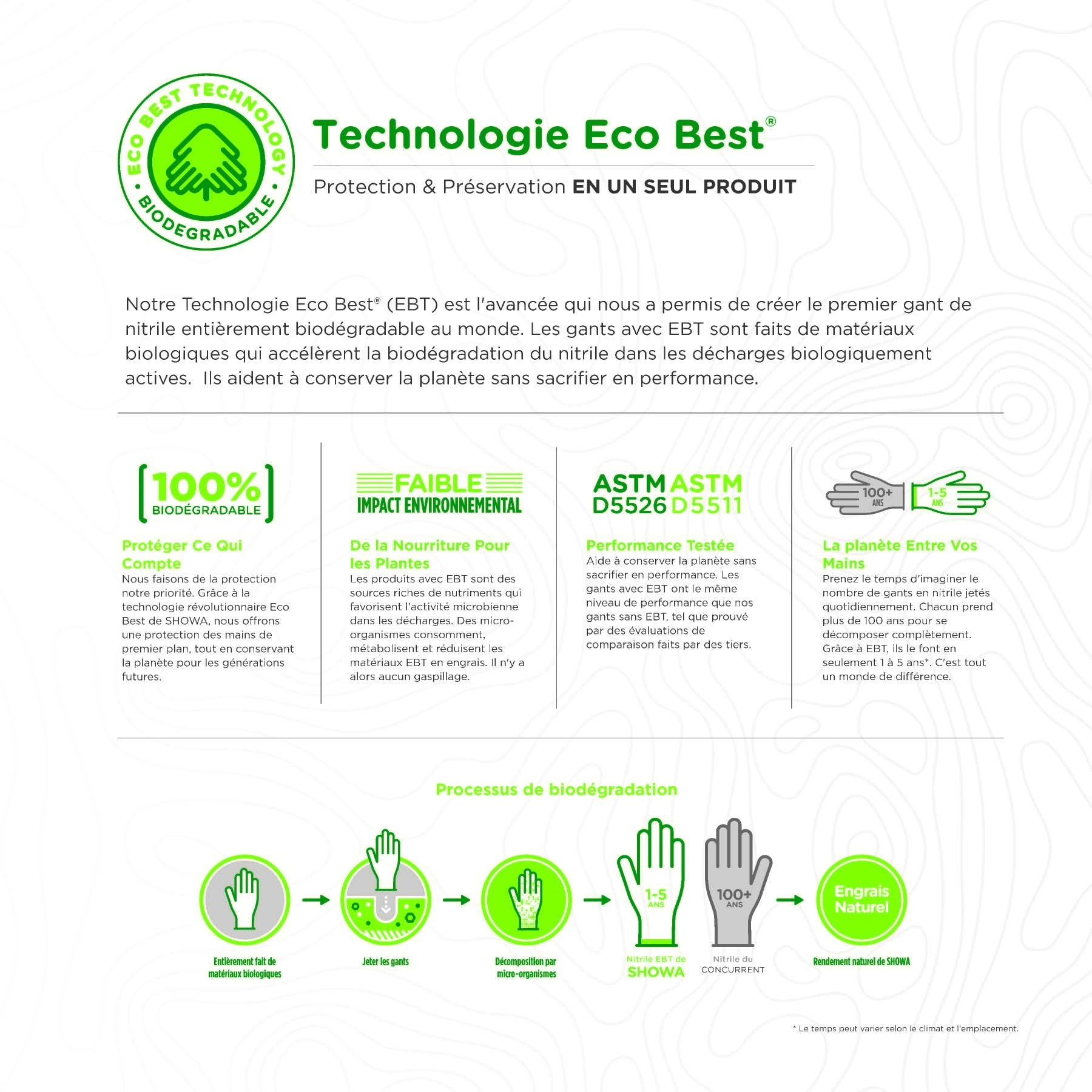 Les inventeurs du premier gant jetable biodégradable en nitrile au monde, vous offrent maintenant un autre modèle de gant nitrile biodégradable avec la Technologie Eco Best. Cette technologie accélère la biodégradation du nitrile en composés biologiquement actifs qui sont digérés par les bactéries anaérobiques des sites d'enfouissement. Ce gant contient du matériel organique qui le rend attrayant à l'activité microbienne.