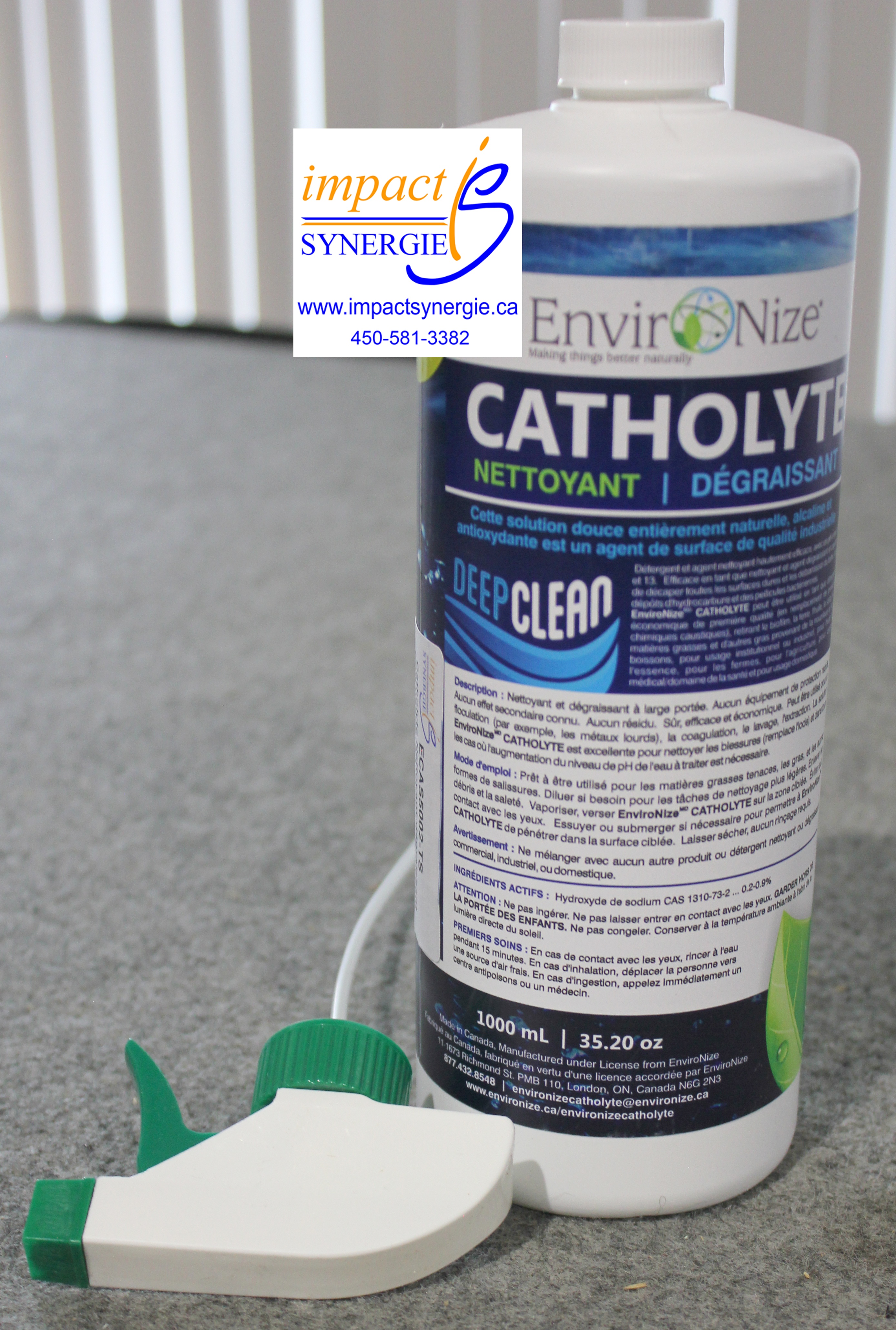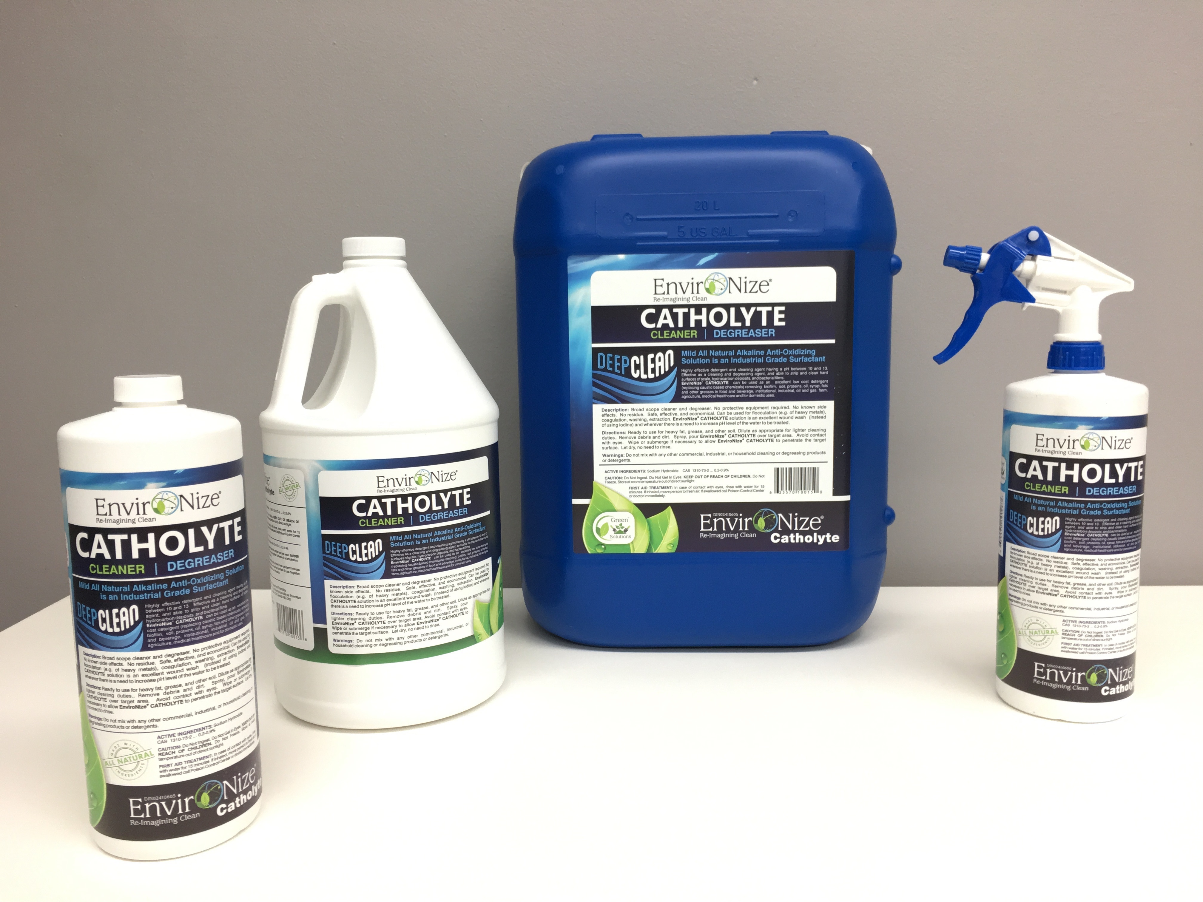 Le Catholyte d'Environize® peut être utilisé en tant que détergent économique de première qualité (en remplacement de produits chimiques caustiques), retirant le biofilm, la terre, l'huile, le sirop, les matières grasses et d'autres gras provenant de la nourriture et des boissons, l'essence etc. D'usage institutionnel ou industriel, le Catholyte d'Environize® est beaucoup utilisé dans le domaine de l'agriculture, de l'horticulture, sur les fermes et dans les serres ainsi que dans le domaine médical et de la santé tout autant que domestique.