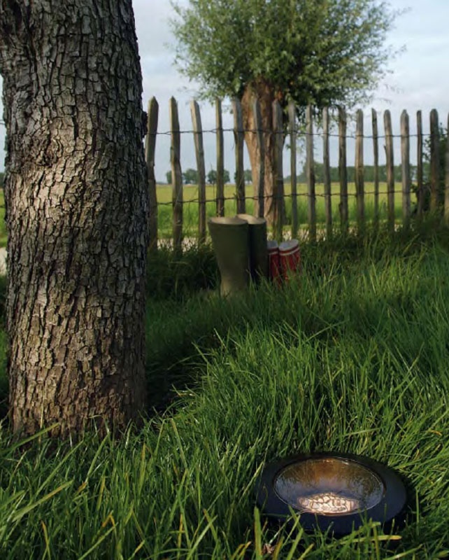 Grâce à sa lumière halogène divergente d’une portée de 15 mètres, cette armature de in-lite® Design en aluminium peint en noir convient parfaitement à l’éclairage des grands arbres, des sculptures et des façades. Cette armature peut être enterrée ou intégrée dans un matériau. Elle émet une puissante lumière en éclairage vers le haut.